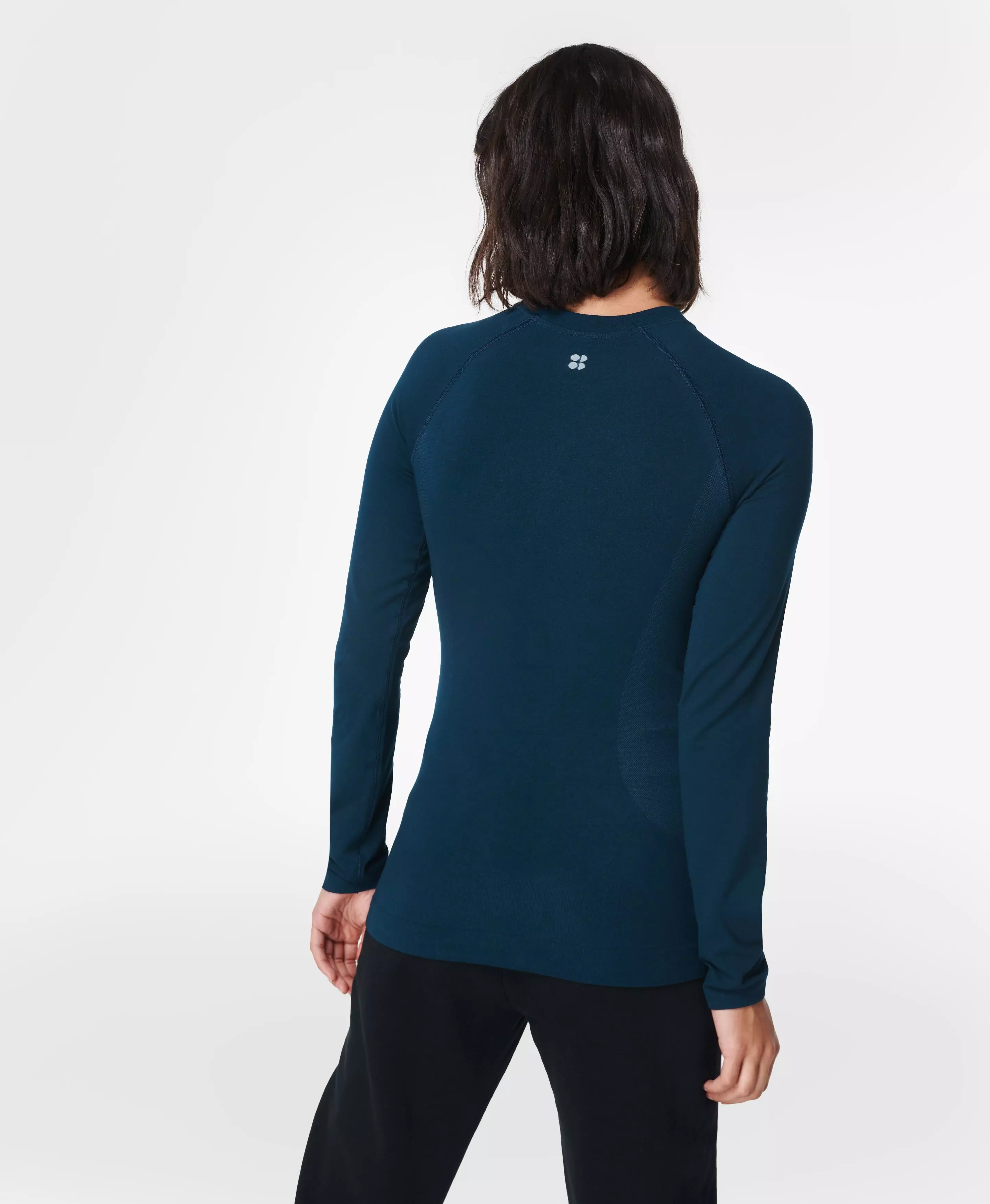 Glisten Seamless Long Sleeve Top Navyblue Women S Base Layers Long Sleeve Tops Www Sweatybetty Com