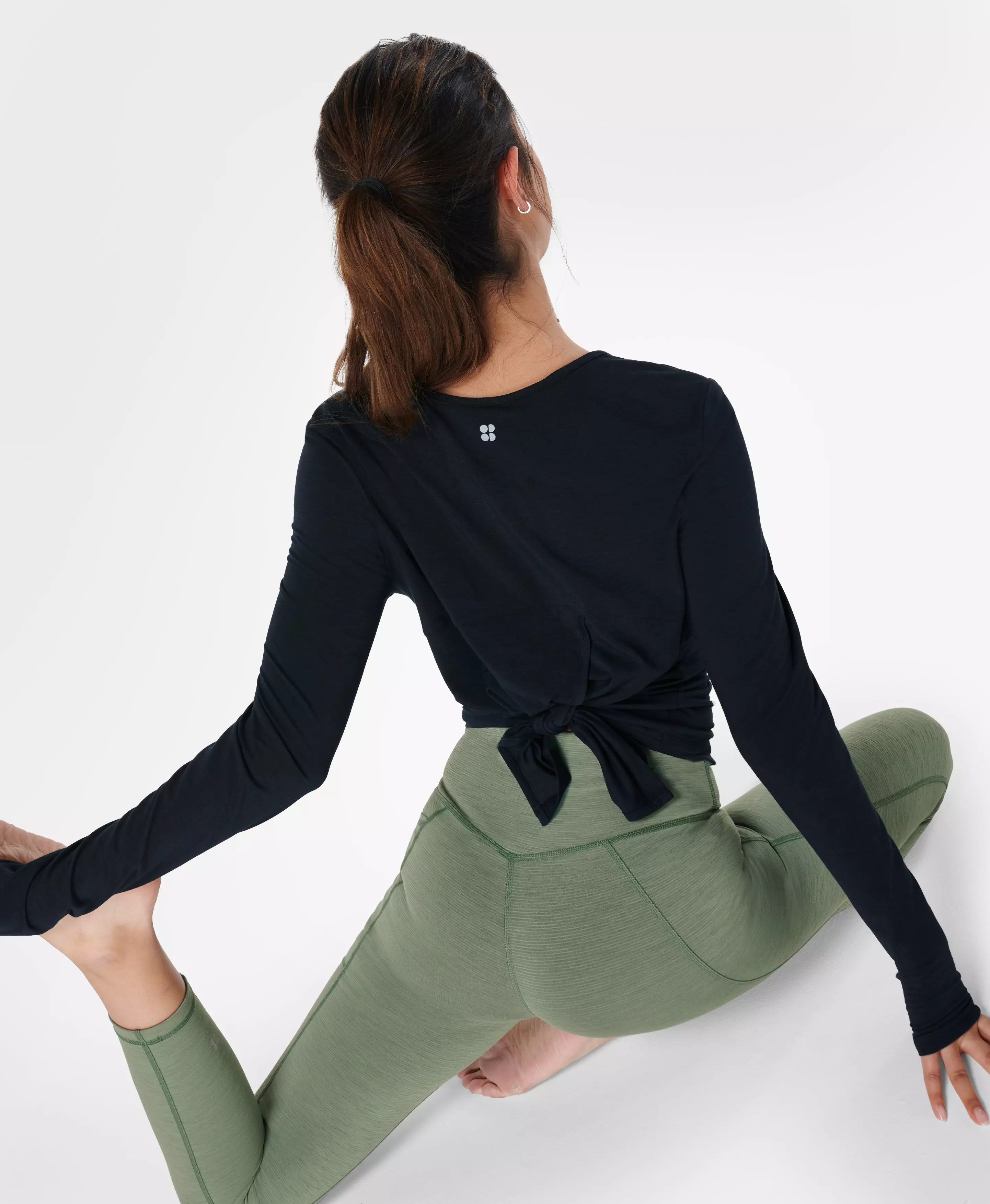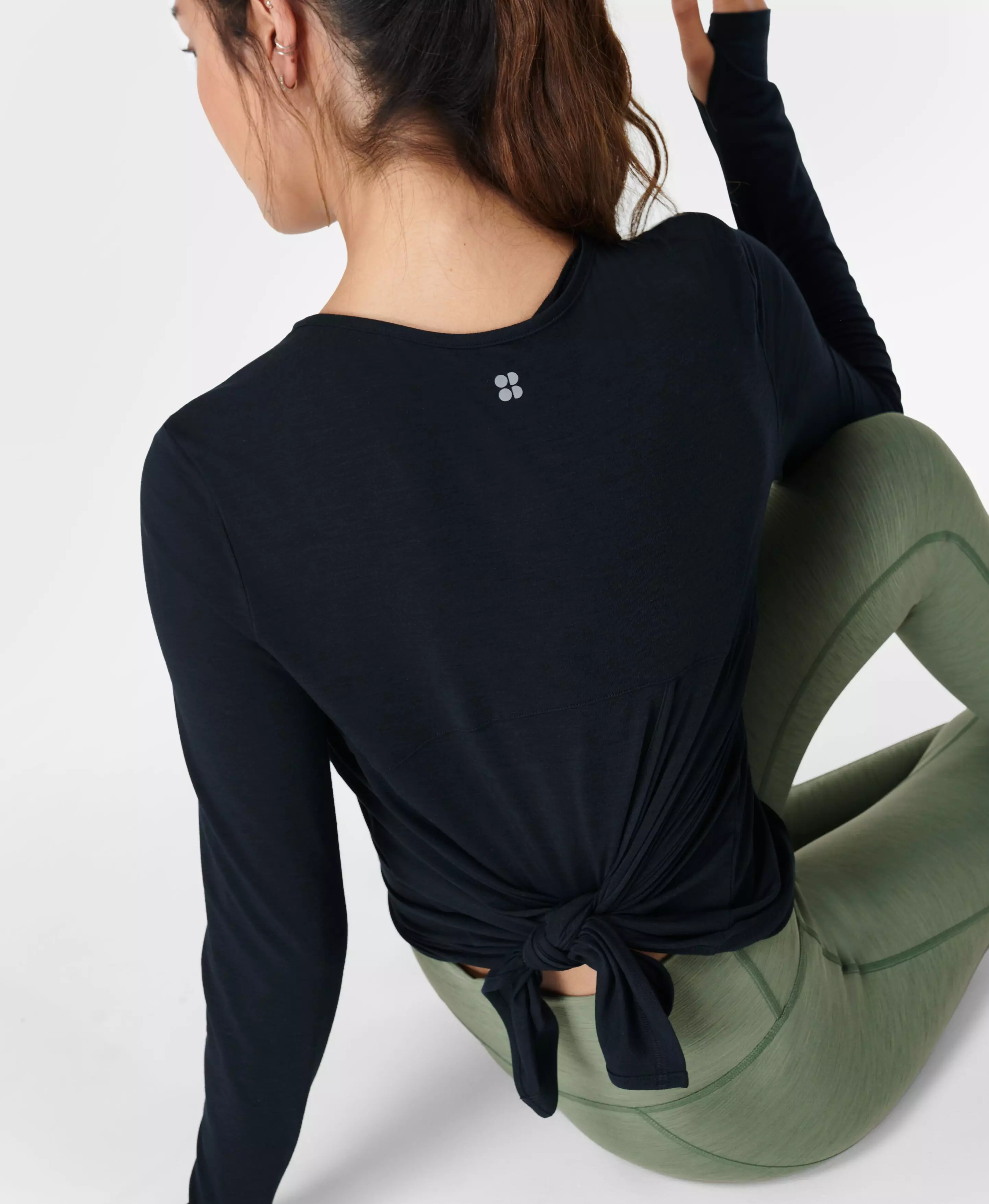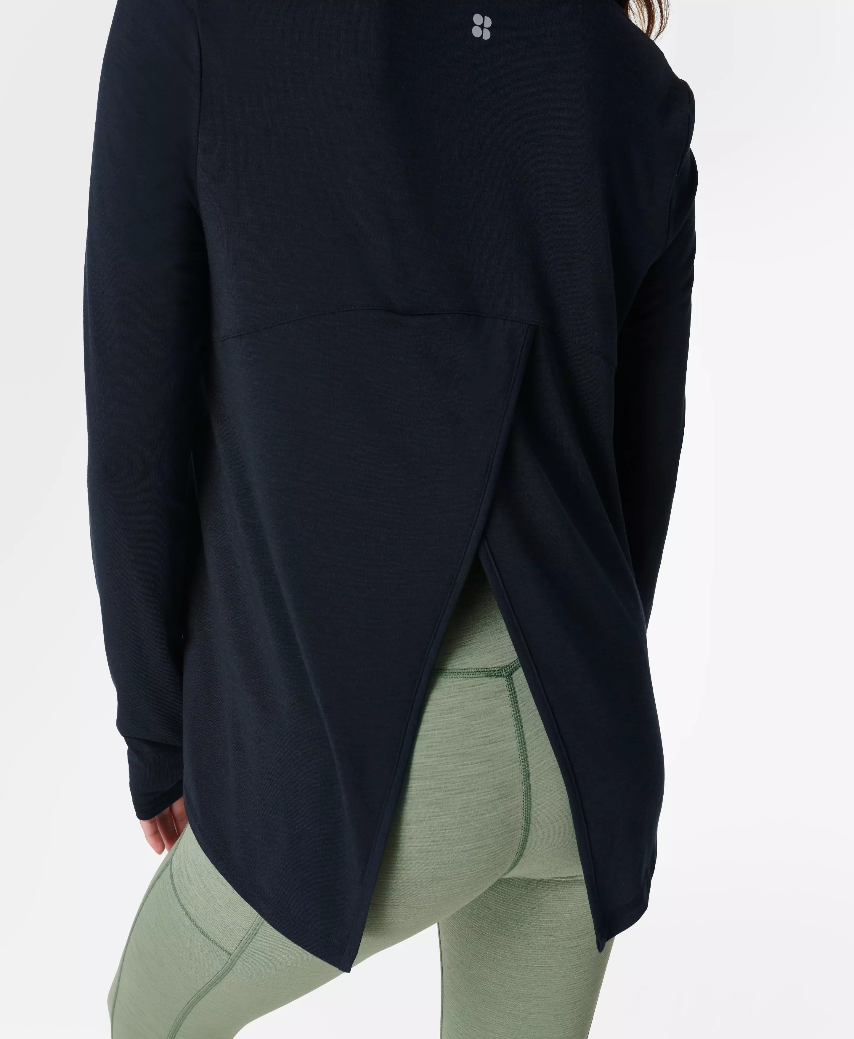 Move Split Back Long Sleeve Yoga Top Black Women S Base Layers Long Sleeve Tops Www Sweatybetty Com